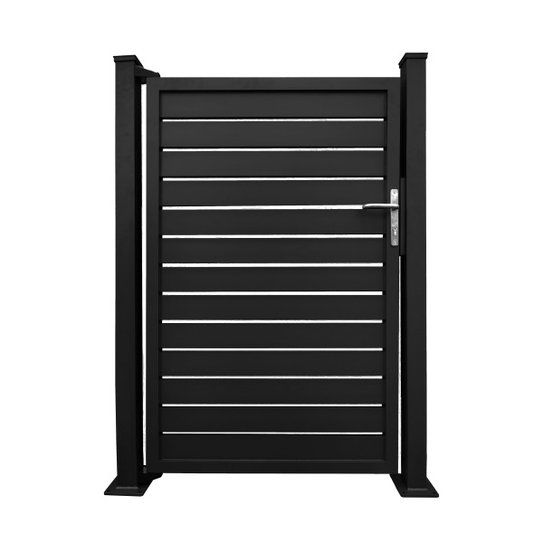 Cancello pedonale a battente in alluminio verniciato a polvere.