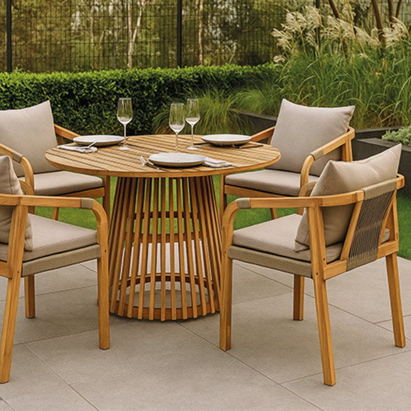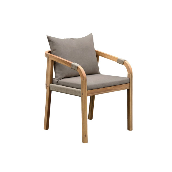 Sedia con braccioli in legno di acacia e corda.