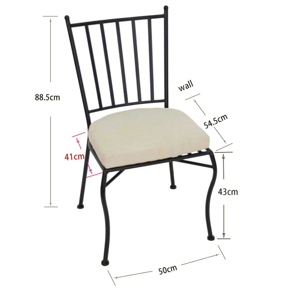 Sedia in metallo verniciato con cuscino in cotone lavabile.