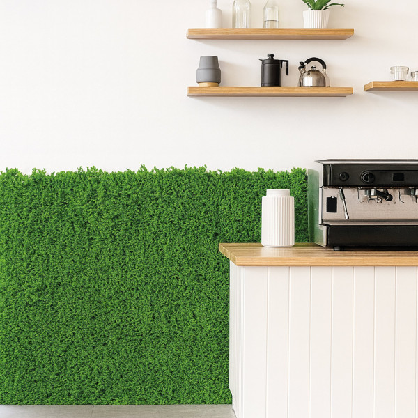 Siepe decorativa da parete con foglie in pe fissate con sistema “point” ad incastro.