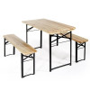 Set birreria composto da tavolo e 2 panche. Realizzato in legno con gambe in metallo verniciato. Disponibile in 3 misure: cm 70x220, cm 80x200 e cm 60x120. Disponibili anche gambe di ricambio.